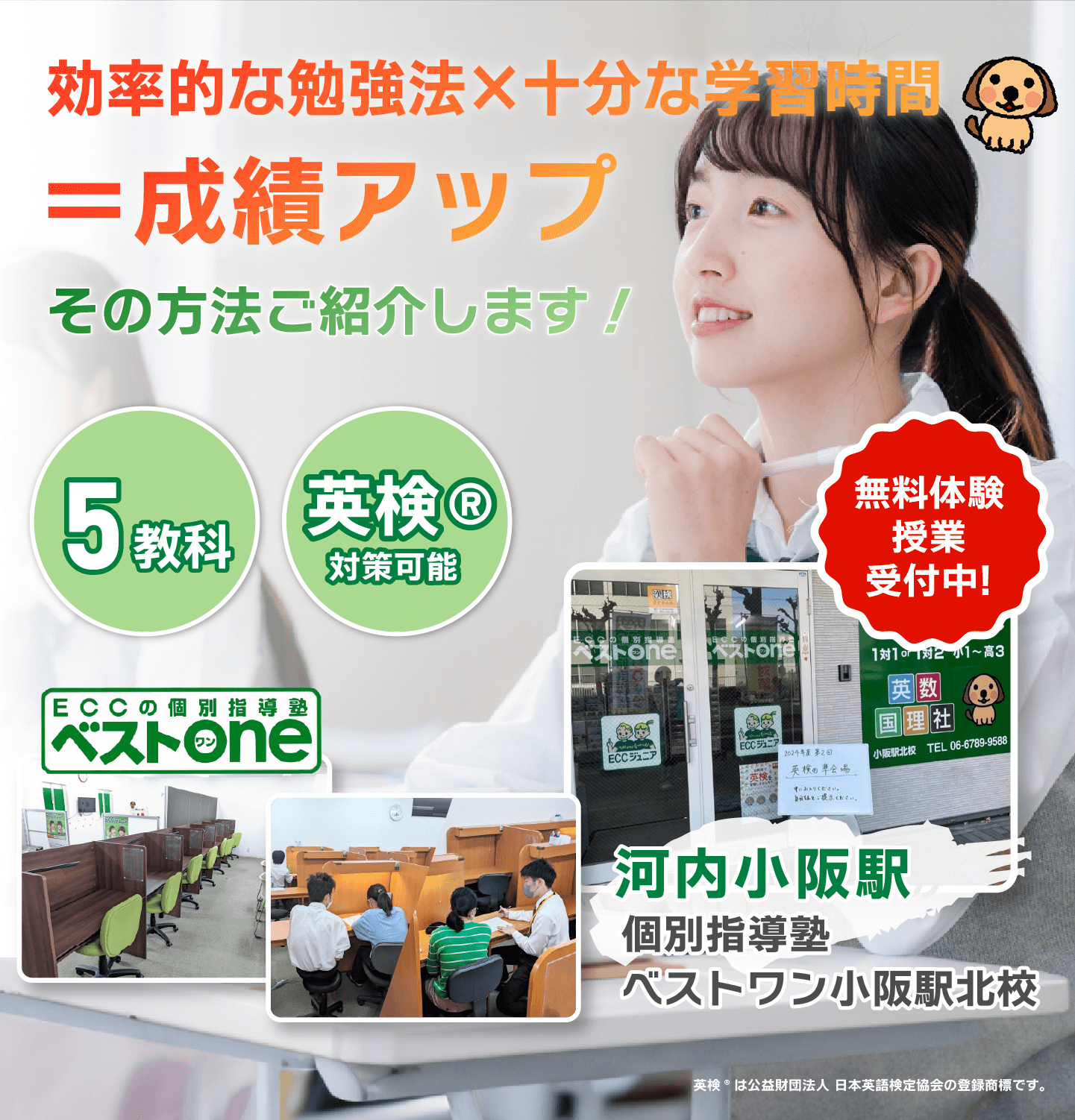 ECCの個別指導塾ベストワン小阪駅北校 (以下「当校」)は、以下のとおり個人情報保護方針を定め、